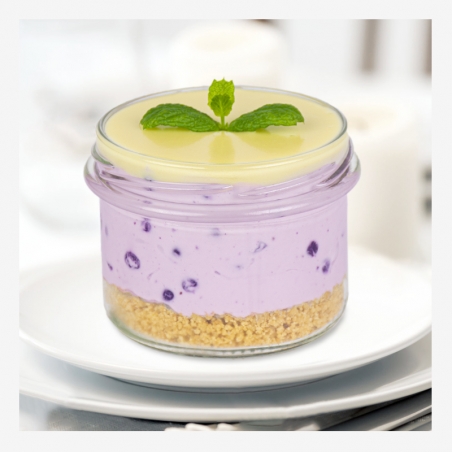 Składniki: jagody, twaróg [SEREK ŚMIETANKOWY, TWARÓG, MLEKO i produkty pochodne], śmietana [ŚMIETANKA, stabilizator: karagen], cukier, wanilia, ciastka [płatki OWSIANE, mąka PSZENNA razowa, cukier, olej roślinny, zarodki pszenne, sól, aromat, regulator kwasowości - kwas cytrynowy, cynamon], MASŁO, czekolada [cukier, tłuszcz kakaowy, odtłuszczone MLEKO w proszku, serwatka w proszku (MLEKO), tłuszcz mleczny, emulgator (lecytyna SOJOWA), naturalny aromat], mięta.