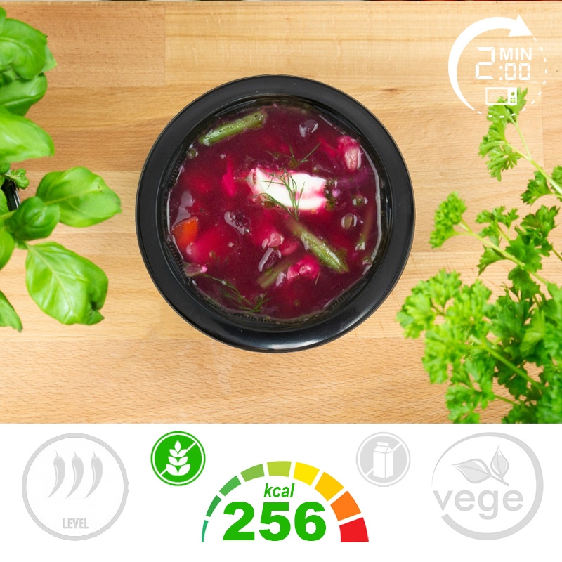 Składniki: buraki, kapusta, pietruszka, marchewka, SELER, ocet, cukier, JAJA, mięso wieprzowe, ziele angielskie, liść laurowy, sół, pieprz, fasola biała, fasolka szparagowa, ziemniaki.